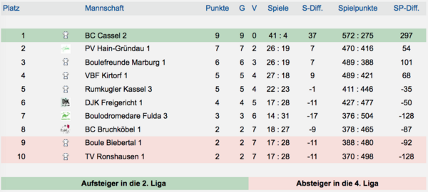 Endstand 3. Liga Mitte/Nord (1. Mannschaft):